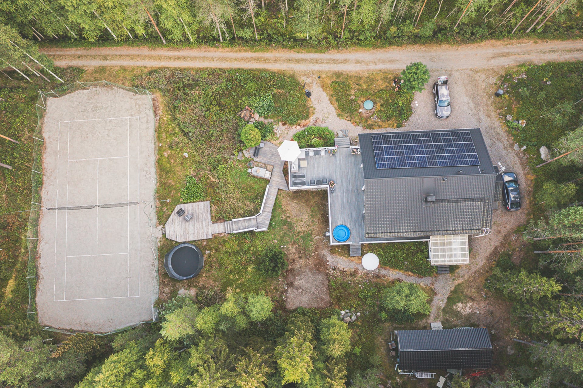 Villa Joutsen is made for outdoor living. The spacious sun terrace provides plenty of room for lounging, dining, and relaxation, with the evening’s highlight being a dip in the warm hot tub under a sky full of stars. For those seeking an active holiday, the property’s very own tennis court is a rare and enticing addition.