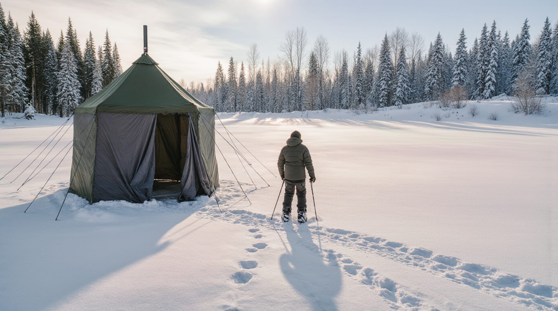 Saunaelämys järven jäällä Rokuan luonnon keskellä