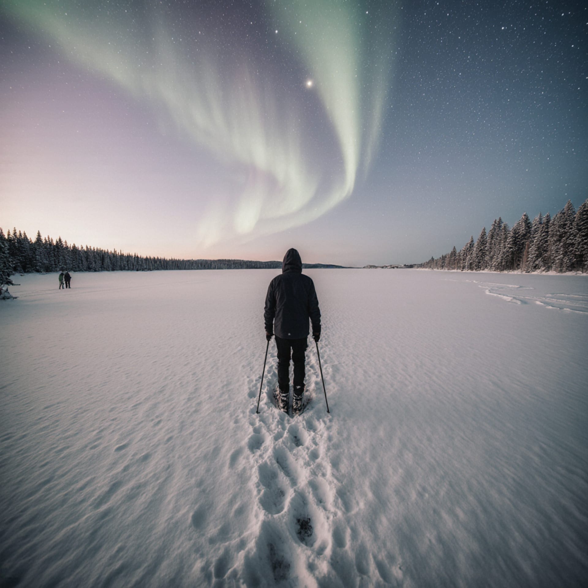 Lumikenkäseikkailu Rokualla revontulia metsästäen